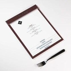 Créez un protège-menu unique en choisissant chaque détail : format, matériau, couleur, marquage, finition, visuel, logo.