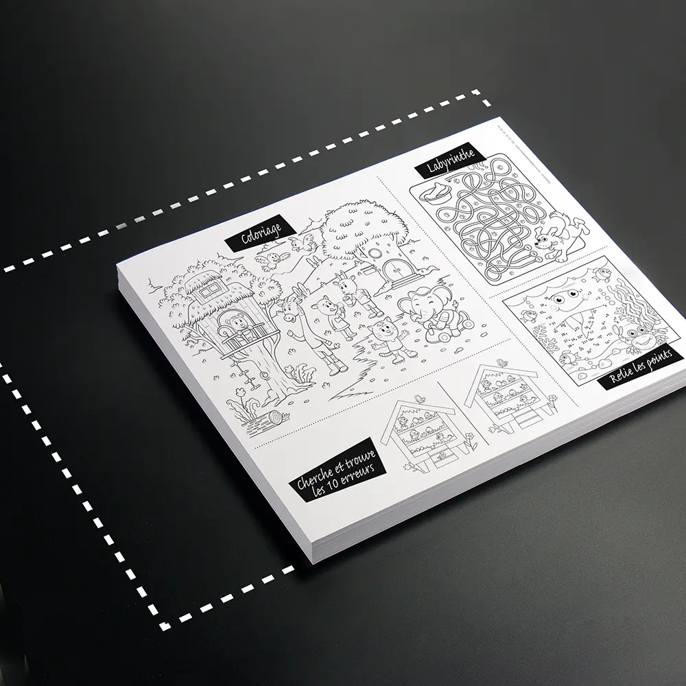 Téléchargez notre gabarit au format ZIP, comprenant des fichiers InDesign et PDF, pour vous aider à réaliser votre maquette. Le fond perdu permet de s'assurer qu'il n'y aura pas de bords blancs après la découpe de votre document imprimé, tandis que les marges de sécurité garantissent que les éléments importants de votre design ne seront pas coupés. Une fois votre maquette finalisée, nous vous demandons de nous l'envoyer au format PDF, en veillant à inclure le fond perdu. Cela nous permettra de procéder à l'impression de votre document sans aucun problème.